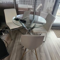 Modern Round Dining Table with Clear Tempered Glass Top, 4 Chrome Legs Kitchen Table $120Chicago, IL