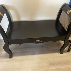 Elegant Black Wooden Accent Bench with Gold Floral Detail Classic Vanity / Entryway Seat $60Chicago, IL