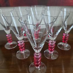 Set of 9 mouth-blown glass water goblets with hand-painted pink beaded stems by Pier 1 Imports$85Willowbrook, IL