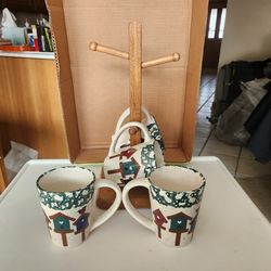 Used Wood Coffee Cup Holder & 4 Coffee Cups$5Palos Park, IL