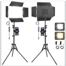 2 Pack LED Video Light with Barndoor, 30W Photography Lighting with Tripod Stand, 3000Lux CRI 98+ 2500K-8500K Studio Light Podcast Lighting for Video $39Arlington Heights, IL