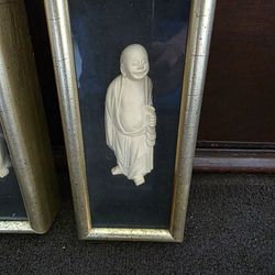 Pair of carved boxwood figurines depicting Buddhist monks in shadow box frames$125Willowbrook, IL