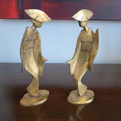 Pair of cast metal figurines depicting Japanese dancers in traditional kimono and conical hats$48Willowbrook, IL