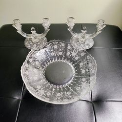 New Martinsville Glass Company Double Candle Holders & Bowl$25Addison, IL