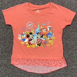 Authentic Disney Parks Walt Disney World girls XS (4/5) coral colored shirt from the "Magic Kingdom" collection features appliqued graphics of Mickey $10Stickney, IL