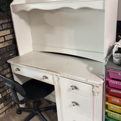 Solid wood white desk with chair, New LED light and hutch$180Roselle, IL