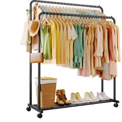 Clothes Rack, Heavy-Duty Garment Rack with Shelves & Wheels, Freestanding Wardrobe Organizer with Hooks, Ideal for Bedroom, Laundry, or Balcony, 32.5"$50Oak Lawn, IL