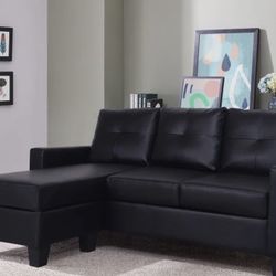 Titanic Ziva Sofa/Chaise in Black Faux Leather (small tear in seam in back see pics) ❤️$150Ind Head Park, IL
