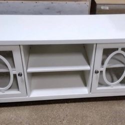 New Modern White Media TV Storage Stand with Tempered Glass Doors