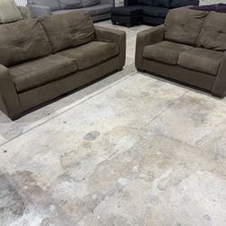 Comfy Sofa & Loveseat Set - Ashley Brand - 2pcs - Cleaned - Medium Brown Delivery Available$300Libertyville, IL