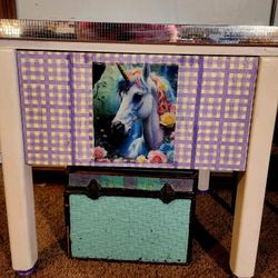 Custom hand painted and decorpage, nightstand drawer side table, Child desk Purple Solid Wood $35Mattoon, IL