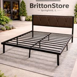 Modern Metal Bed Frame w/ Upholstered Headboard – Sturdy – Must Go Today$110Springfield, IL