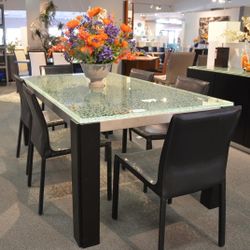 The Ritz Veronica Rectangular Leg Dining Table with Crackled Glass Top 75”x43”x30”$399Chicago, IL