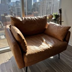 Albany Park Armchair β Distressed Vegan Leather (Tan/Cognac) β Excellent Condition$700Chicago, IL