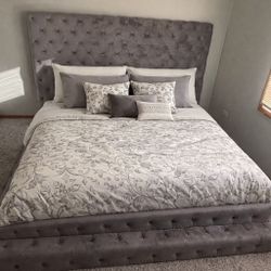 Queen Bed Frame w/ Mattress & Box Spring And Bedding For Sale $350Waukegan, IL