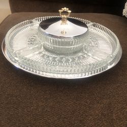 Vintage Kromex Glass Serving Platter Relish Tray w/ Lid Divided Dish Lazy Susan$30Woodstock, IL