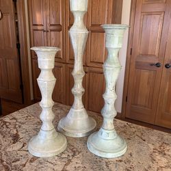 RUSTIC METAL PILLAR CANDLE HOLDERS, SET OF 3 - 15,18,24 INCHES HIGH, LIGHT GREEN$75Winfield, IL