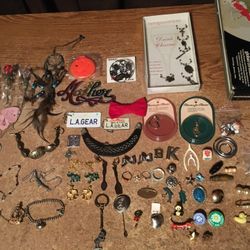 Lot Of Jewelry Pens Earrings Bongo Ring Elephants Dog Panda Girl Scouts Jade Safety Pen Charms Dreamcatcher Suncatcher Bracelets$35Chicago, IL