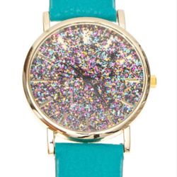 New MSPCI Colorful Shimmery Dial Round Gold Tone Case Blue Faux Leather Band Watch / FREE SHIPPING $45Chicago, IL