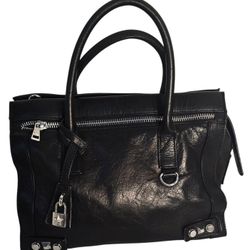 Steve Madden Black Leather Satchel Handbag Silver Hardware Designer Purse Large$89Bellwood, IL