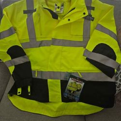 NEW Radians Radwear High Visibilty Class 3 Heavy Duty Rip Stop Waterproof Rain Jacket, Size 2X. Has a couple of marks on the silver reflective strips $40Huntley, IL