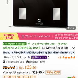 ARBOLEAF BODY COMPOSITION SCALE$80Crystal Lake, IL