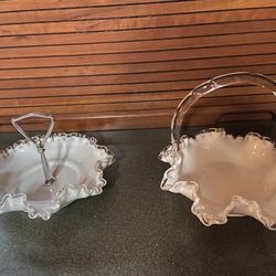 Vintage Fenton ruffled edge whirw glass dishes$30Bull Valley, IL