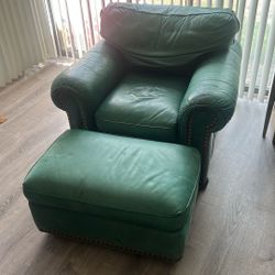 Ethan Allen Green Leather Chair & Ottoman $100Libertyville, IL