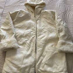 Womens Komitor Faux Leather Jacket White Fur Hood Y2K Coat Size L$45Hoffman Estates, IL
