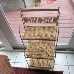 Plant Stand Or 3 Tiered Stand. Brass & Rattan. $50Trout Valley, IL