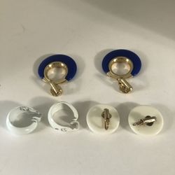 Vintage Clip-on White Enamel Metal, Gold Tone Blue & Cream Button Earrings $39Bedford, IN