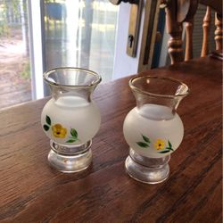 Vintage Frosted Yellow Flower Miniature Bud Vases Colored Gold Trim$18Bedford, IN