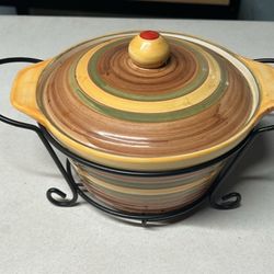 Vintage Temp-tations By Tara 2 Qt Casserol Crock Striped Pot & Lid 8” Round$20Louisville, KY