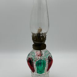 Hong Kong 9” Oil Lamp Colorful Globe Thick Clear Glass Chimney Red Green 1980’s Some Wear$14Bedford, IN