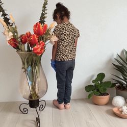 Large Glass Vase in Wrought Iron Vase Holder with flowers $50Plainfield, IN