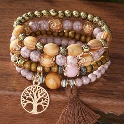 4Pcs/Set Bohemian Style Tassel and Tree of Life Pendant Multilayer Wood and Bead Bracelets$5Evansville, IN
