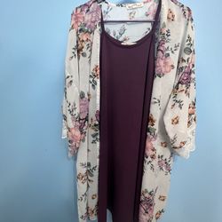 Women’s Kathie Lee plus size black floral dress with tan cardigan. Size 16w$13Mccombs, KY