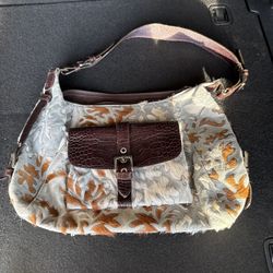 Bergé damask-patterned fur shoulder bag A distinctive front flap pocket with a buckle and magnetic snap closure. An adjustable leather shoulder strap$25Fort Wayne, IN