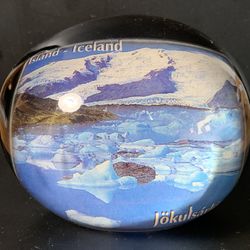 Souvenir Island Iceland, Jökulsárlón Glacier Lagoon Paperweight Lucite Dome 3”Lg$14New Castle, IN
