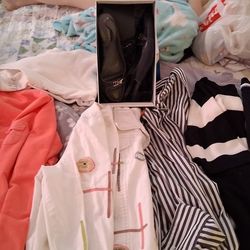 10 PC Ladies Casual Designer Clothes And Shoes Lot Sz Med Large Shirts Jacket Sz 8 Pants And Shoes Excellent Condition $25Huntington, IN