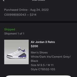 Air Jordan Retro 3$225Oaklandon, IN