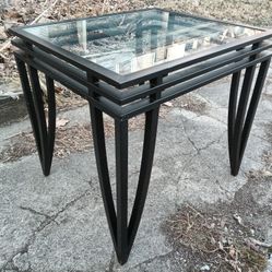 Stylish Contemporary End Table with Glass Top and Steel Frame - Sturdy!