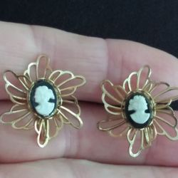 VTG.Estate CAMEO GOLD PLATED Screwback lacy flower earrings~1 in.$14Zionsville, IN