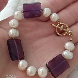 Vtg.Genuine Pearls & amethyst Colored Stone Gold Plated Bracelet- 7.25 In.$28Zionsville, IN