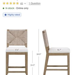 bar stool. Counter height woven backrest. Rubberwood frame$50Mccordsville, IN