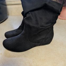 BU Collection 7” High, Black Faux Suede Boots, 1” Heels, Women’s Size 9$11Westfield, IN