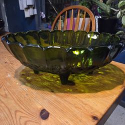 Vintage Indiana Glass Company footed Oval Fruit Bowl In Olive Green $30Indianapolis, IN