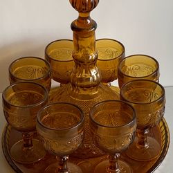 Vintage Sandwich Chantilly Amber Tiara Decanter Set made by Indiana Glass Co.$50Acton, IN