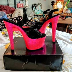 Hot Pink Glitter And Black High Heel Pleasers Size 7$50Indianapolis, IN