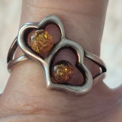 Vtg.Sterling Silver Geniune AMBER Stones Double Hearts Ring- Sz7$38Zionsville, IN